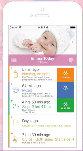 Enregistrement des événements et activités : biberons, tétées, nourriture solide, tire-lait, couches, sommeil, humeur, étapes importantes, santé, médicaments, vaccins, croissance, photos et notes détaillées…