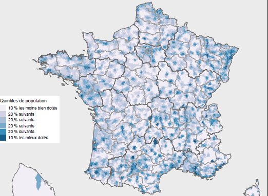 Selon la Drees, ces fortes inégalités « s’expliquent en partie par une forte concentration de l’activité en centres de santé dans les territoires les mieux dotés ». Si on exclue l’activité de ces centres de l’indicateur, les 10 % de la population les mieux dotés aurait une accessibilité moyenne « seulement » 6,2 fois supérieure à celle des 10 % les moins bien dotés. CQFD.