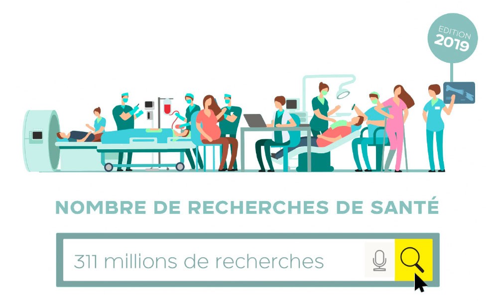 Très recherchés, les chirurgiens-dentistes le sont aussi par les « maux » révélés par les internautes. Ainsi, les problèmes de dents (34 %) sont le motif de recherche le plus formulé devant les yeux (16 %) et… le sexe (10 %). La part des requêtes par département dessine une carte des déserts médicaux. Ainsi, dans les départements de la Savoie, du Vaucluse, de l’Hérault, de Paris et de sa petite couronne, le nombre de recherches « santé » effectuées par habitant (établissements et professionnels) est supérieur à 4,5 contre 3,98 en moyenne au niveau national.