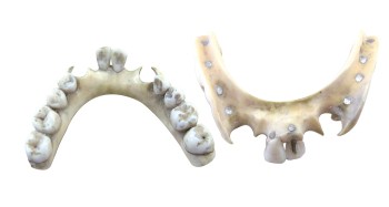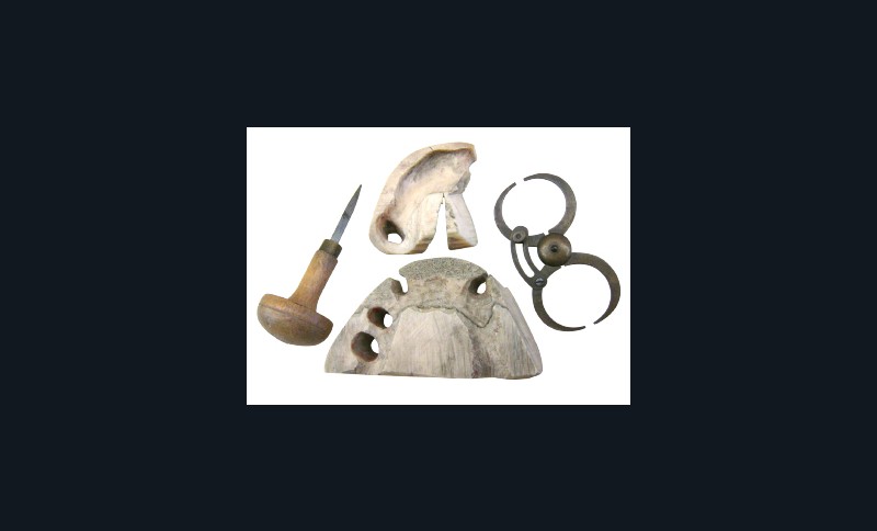 C’est donc la technique d’élaboration prothétique avec des modèles d’empreintes qu’utilisèrent les praticiens pour créer les prothèses en ivoire d’hippopotame, technique consistant à adapter un bloc en l’évidant progressivement à la demande. Le modèle en plâtre positif issu de l’empreinte était recouvert d’une poudre marquante vermillon. Le bloc d’ivoire était présenté en enlevant les traces de vermillon point par point, puis présenté de nouveau en éliminant les traces vermillon témoignant du frottement. Progressivement, le bloc était « descendu » jusqu’à son adaptation au modèle. Travail fastidieux mais qui se réalisait sur modèle avec quelques ajustages complémentaires en bouche.