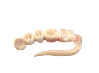 Mais en réalité, l’ivoire d’éléphant se détériorait rapidement en bouche en se putréfiant avec la salive, dégageant une mauvaise odeur ainsi qu’un goût désagréable, et changeait de teinte tirant vers le gris vert. L’ivoire d’hippopotame, la dentine de sa défense, se montrait bien plus résistante à l’action salivaire et offrait de bien meilleures surfaces de taille. L’ivoire de Morse, lui aussi bien résistant, fut aussi employé là où il était disponible.