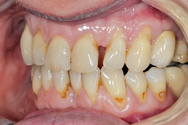 Ainsi, si le brossage « normal » n’altère pas significativement la surface dentaire selon certaines études, un brossage excessif horizontal et appuyé avec un dentifrice fortement chargé en abrasifs, comme le sont les dentifrices dit « blancheur », favorisera sans aucun doute l’ouverture des tubuli et les sensibilités dentinaires. Par ailleurs, l’exposition dentinaire des lésions de collet non carieuses non traitées associées à une hygiène imparfaite favorisera le développement carieux sur ces zones exposées (voir photo). Face à des lésions cervicales non carieuses symptomatiques ou non, le chirurgien-dentiste doit tâcher d’en comprendre les principaux facteurs étiologiques et adopter une thérapeutique adaptée afin d’enrayer la cascade des événements pathogéniques qui aggraveront inévitablement la situation avec le temps. Mais le traitement de ces lésions révèle encore bien d’autres difficultés…