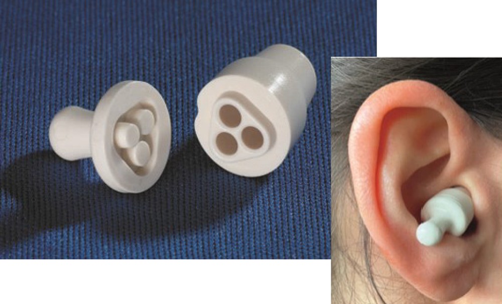 Brevetée, basée sur le principe des résonateurs, Magic Sonic protège efficacement contre les bruits stridents de la turbine autour de 6 000 Hz. Il préserve totalement les échanges des chirurgiens-dentistes avec le milieu extérieur, pour qu’ils écoutent et parlent sans gêne avec leur patient et leur assistant(e). Système passif sans piles, nettoyable, confortable, Magic Sonic est une solution de protection auditive économique, également efficace lors de l’utilisation du détartreur pneumatique, de l’aspiration chirurgicale ainsi qu’au laboratoire de prothèse. Le coffret contient deux paires de Magic Sonic et deux cordons silicones.