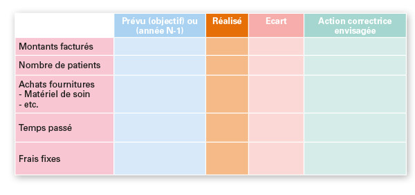 Il permettra en outre d’envisager des actions correctrices au niveau de chaque indicateur retenu, par exemple prendre moins de temps pour réaliser tel ou tel acte ou revoir les prix d’achats de ses fournitures (en la matière,
