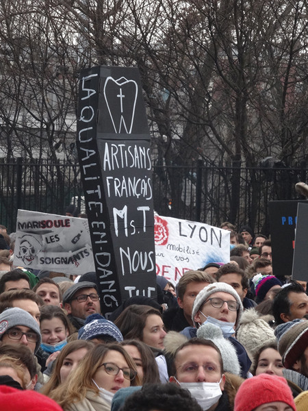 Même si l’ambiance était plutôt bon enfant, la colère contre le règlement arbitral imposé par Marisol Touraine après l’échec des négociations conventionnelles sur l’avenant numéro 4 était palpable. Jets d’œufs et de peinture contre la façade du bâtiment, fumigènes à gogo, slogans fleuris et même blocage du périphérique quelques petites minutes… Une première manifestation réussie qui augure bien d’une mobilisation générale de la profession dans les semaines à venir. Pour maintenir la pression sur le gouvernement, des actions ponctuelles seront organisées : le 31 janvier dernier, par exemple, des étudiants ont manifesté devant les locaux de RTL dans lesquels Marisol Touraine se trouvait pour une interview. Des campagnes de mailing, d’arrêt de la carte Vitale ou des rassemblements sont également envisagées. Et une grande manifestation nationale unitaire réunissant toutes les composantes du secteur dentaire est programmée le 3 mars. Un événement qui aura lieu un peu avant ou après la publication au Journal officiel du règlement arbitral prévu également début mars.