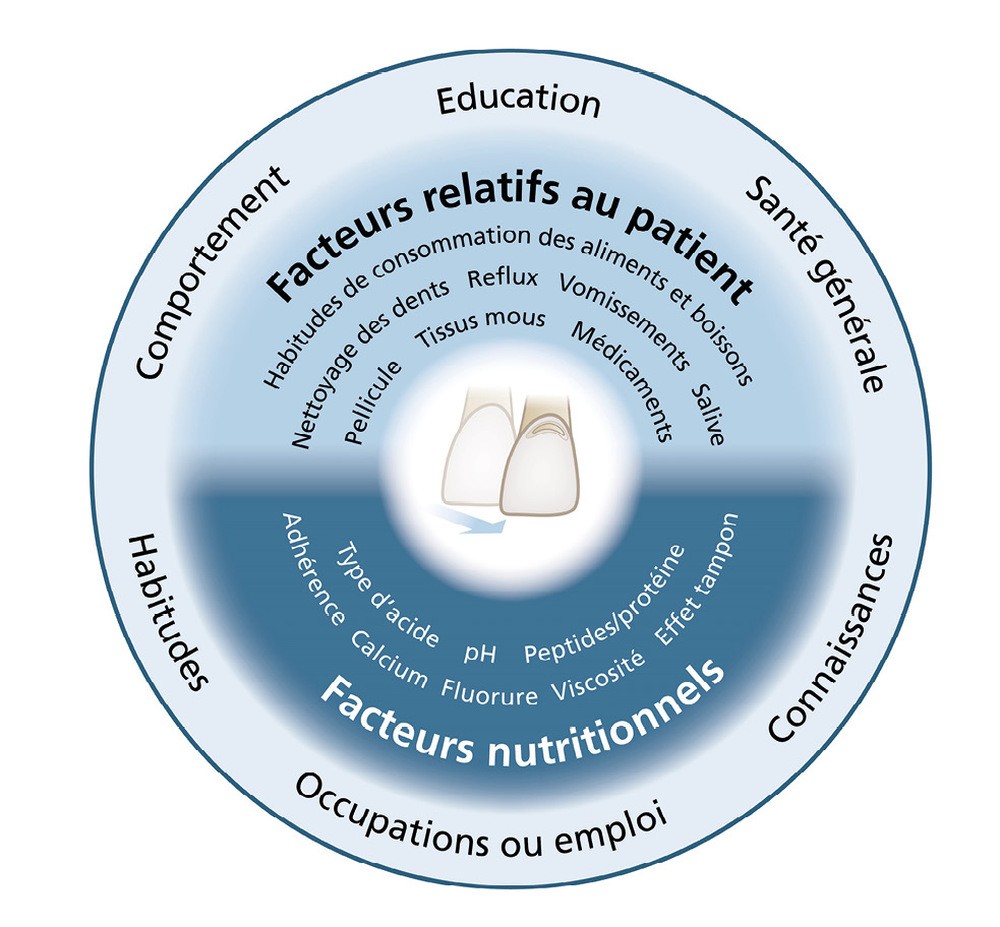 Outre les conseils nutritionnels, la modification des aliments et des boissons à pouvoir érosif ainsi que la modification de la pellicule acquise grâce à des peptides peuvent prévenir l’érosion dentaire.