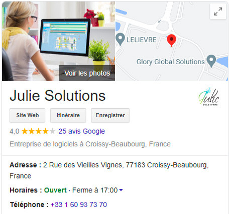 Une solution de prise de rendez-vous en ligne est tout de même possible ! Notre service dédié à l’installation de nos services crée pour vous une page internet, grâce à Google MyBusiness. Le nom ne vous dit peut être rien mais vous savez certainement ce que c’est, sans le savoir. C’est l’encart qui s’affiche à la suite de 95 % des recherches locales de professionnels sur Google. En somme, c’est un peu comme une carte de visite sur Internet. On y trouve les informations essentielles pour vous localiser et vous contacter. Le plug-in de prise de rendez-vous est alors intégré dessus.