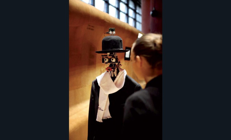 Besoin de personne. Machine à explorer le temps, la scénographie sonde les cultures de tous pays en tout temps, à la recherche de « persona ». Le mot est bien choisi, avec ses différents sens : masque du théâtre antique, personnalité écran en psychologie Yungienne, consommateur ciblé en marketing ou utilisateur imaginaire en ergonomie informatique. Toutes ces définitions ont en commun le caractère fictif de cette personne, inventée pour les besoins de la cause. Traduites par plus de 200 objets, les Persona réunies ici sont des objets d’art ou de culte auxquels l’homme prêtait vie, ou des artefacts qui donnent l’impression bizarre d’être vivants, et avec lesquels on peut tisser, plus ou moins consciemment et raisonnablement, d’étranges liens affectifs. A côté des sculptures, totems, fétiches, gris-gris de tout poil et autres interfaces de divination, figurent ainsi des créatures de substitution (robots animés, poupées de compagnie, peluches domestiques…) qui questionnent les notions d’aura, d’« effets de personne » et de « présences-limites », c’est-à-dire quasi- humaines. Certains les trouvent apaisantes (voire thérapeutiques) et d’autres tout bonnement inquiétantes. Le roboticien Masahiro Maori, dont le concept de Vallée de l’Étrange est illustré ici, a bien tracé dès 1970 les contours du quasi-humain acceptable.