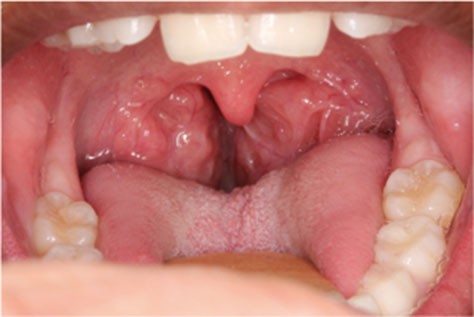 – les enfants présentant un obstacle ORL (les plus nombreux) : typiquement, il s’agit d’une hypertrophie des amygdales (tonsilles) palatines (fig. 1) ;
