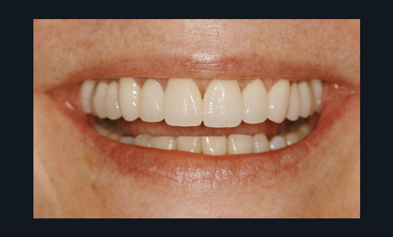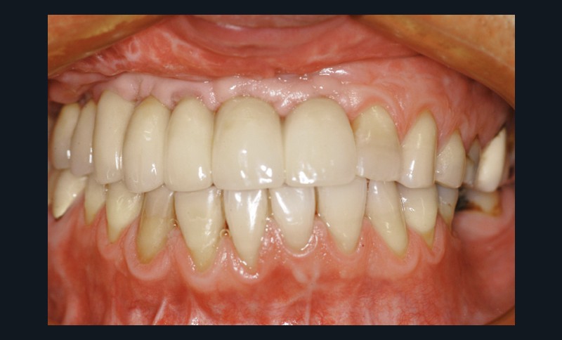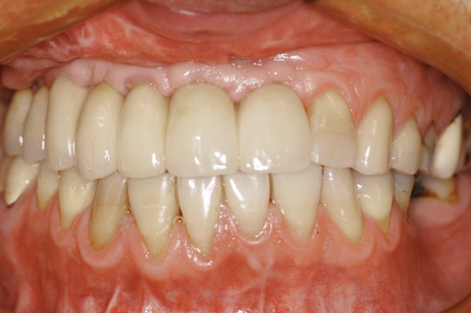 La demande de correction de cette anomalie esthétique incite les patientes à rechercher une compensation prothétique (à travers un abaissement des bords incisifs maxillaires visant à rendre sa visibilité au groupe incisivo-canin maxillaire) qui concoure à recomposer les rapports des étages de la face (en minorant l’étage inférieur et majorant l’étage moyen). La reprise de ces cas cliniques se révèle particulièrement délicate et repose sur une analyse rigoureuse des clefs esthétiques de l’harmonie du sourire et de son rayonnement au sein du visage.