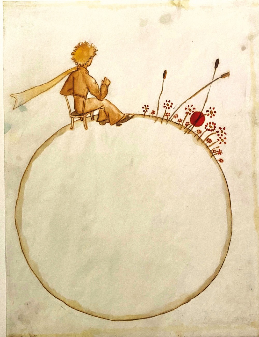 Comme un mirage tremblant né des sables, sa frêle silhouette s’est posée un jour sur le désert de la page, entre les raids, escales et pannes communs à l’aviateur et à l’écrivain. On ne chasse pas de sa feuille, comme chat importun qui s’y étale, une telle apparition. On peut tourner autour, feindre de l’ignorer, la pousser dans la marge. Mais elle revient, s’installe, s’impose. Alors on la regarde, ainsi que l’a fait et nous le raconte Saint-Exupéry, puisqu’elle a fini par gagner, c’est-à-dire gagner la page elle-même, s’incorporer au récit : « Et j’ai vu un petit bonhomme tout à fait extraordinaire qui me considérait gravement. »