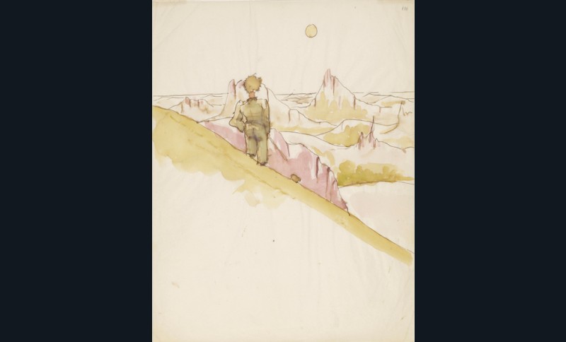 Toute la magie du Petit Prince est déjà là, dans ces premières lignes, dans ce face à face. Et aussitôt le lecteur s’interroge. Non sur ses traits, à jamais fixés par l’auteur, mais sur ceux qu’est venu réfléchir cet ange blond comme les sables dans une histoire aux couleurs de conte et aux habits de fable, et somme toute « à mille milles de toute terre habitée ». Pas besoin d’être grand Aladin pour saluer là une formule magique de génie, un sésame : chacun, à tout âge, peut voir s’ouvrir devant lui un univers qui lui parle intimement, et c’est le secret du succès planétaire de ce petit livre. Mais il n’est pas anodin d’écrire que ce « petit bonhomme », au dire de Saint-Exupéry, le « considérait », et « gravement ».