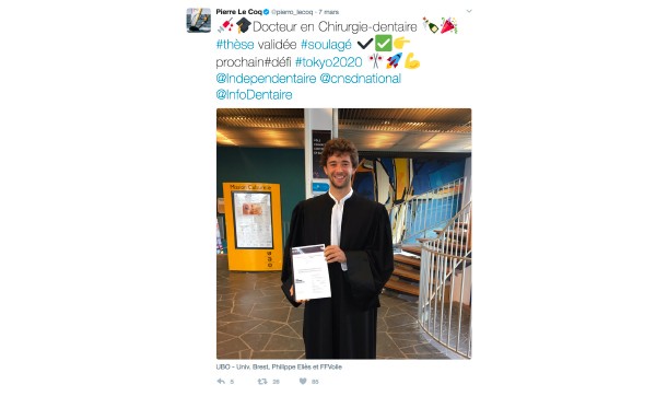 C’est avec un petit Tweet à notre intention que Pierre Le Coq, notre médaillé de bronze en planche à voile aux Jeux Olympiques de Rio en 2016, nous a appris qu’il venait de valider sa thèse d’exercice.