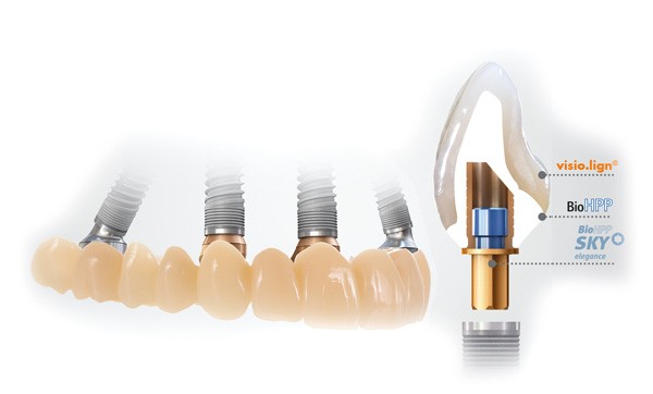 Les piliers hybrides BioHPP SKY elegance permettent de procéder à la restauration immédiate pour des dents unitaires comme pour de petits bridges. Aussi élastiques qu’un pilier provisoire, ils peuvent être insérés immédiatement après l’implantation.