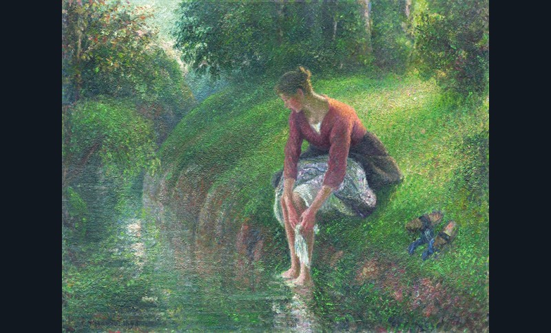 Le père prodigue. On savait Pissarro ennemi du noir et même des ocres, et strict partisan des trois primaires. On le découvre prosélyte de cette vision auprès des plus jeunes dont il éclaircit la palette et qu’il conseille en mentor bienveillant – ce dont Cézanne lui sera toujours reconnaissant*. C’est un père qui offre un enseignement d’autant plus rare qu’il ne l’a pas reçu, s’étant formé tout seul ou à peu près. Il invente sa leçon au fil de l’eau, guidant le pinceau des autres en éprouvant le sien sur le motif. Figure de patriarche mais non pour autant père de l’impressionnisme (qui en compte déjà tant de supposés avec Corot, Jongkind, Manet, Monet…), sa reconnaissance est tardive, et brouillée par ses recherches permanentes qui déroutent alors les amateurs. Grand travailleur et infaillible détecteur de talents (Cézanne, Gauguin, Guillaumin…), il s’engage à cinquante-six ans dans le néo-impressionnisme à la suite de Seurat et Signac, largement ses cadets. On y a vu des errements, une envie un peu ridicule de retrouver une seconde jeunesse en se mêlant à une nouvelle génération, et surtout une impasse, comme le pensait son marchand Paul Durand-Ruel, pourtant fidèle soutien. Deux raisons fortes et sérieuses expliquent cette réorientation : le désir de peindre avec son temps, sans passer à côté de révolutions comme la photographie ou le pointillisme qu’il a tout de suite compris, et puis, moins connue, l’authenticité de sa pensée anarchiste, alimentée par les lectures de Proudhon et Bakounine que son nouvel ami Signac, après Octave Mirbeau et Elisée Reclus, lui a fait connaître.