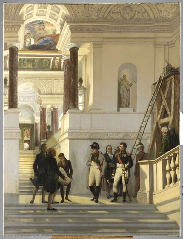 Sa grande préoccupation est de donner l’eau aux Parisiens, qu’il veut aussi remettre au travail. Avec Beaumarchais, on pompait l’eau de la Seine à Chaillot pour la distribuer jusqu’en amont. Une eau sale de sa traversée de Paris. Bonaparte a plus de bon sens : depuis Colbert existe le projet de capter l’Ourcq pour alimenter la capitale à l’est ; il en ordonne aussitôt l’exécution, et l’eau pure débouche… à la Bastille (si possible crachée par son éléphant), avant d’abreuver le cœur de la ville. A Chaillot, il voit plutôt un vaste palais, pour lui, les siens et ses collaborateurs. Les inséparables Percier-Fontaine s’y attellent, tout en poursuivant l’axe majeur par la percée Rivoli qui doit rejoindre les Champs-Élysées, couronnés par l’Arc de Triomphe. Resté à l’état de plan du fait de la chute de l’Aigle, ce futur palais de l’Empire devait former une vaste cité administrative avec son prolongement, rive gauche, par l’axe Champs de Mars-École Militaire. L’emprise de ce plan se superpose presque exactement au paysage qu’on voit aujourd’hui du Palais de Chaillot ! Ce n’est pas, de loin, le seul exemple de la justesse de vues de Napoléon pour Paris. L’audacieux Rambuteau, qui a tout appris avec lui, et le plus hardi encore Haussmann sauront retrouver, pour diriger leurs percées, les bottes à la Souvaroff de l’Empereur, que le podagre Louis XVIII était bien incapable de chausser…