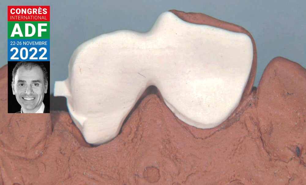 Jean-Pierre Attal : Un peu par hasard, il y a seize ans. Je devais trouver un moyen de remplacer une incisive centrale chez un adolescent de 14 ans. La largeur de l’édentement était supérieure à la largeur de l’autre centrale (fig. 1). Réaliser un bridge collé à 2 ailettes, géométrie enseignée à l’époque, n’était donc pas envisageable pour des raisons esthétiques. À cette période, j’ai lu avec intérêt un article de Matthias Kern, Professeur à l’Université de Kiel, qui montrait qu’à 5 ans les bridges collés en céramique à une ailette étaient plus durables que ceux à 2 ailettes [1]. Ça allait à l’encontre de tout ce que l’on m’avait appris, mais sa publication était convaincante. Avec l’accord de la maman, j’ai donc réalisé mon premier bridge collé cantilever en zirconia (fig. 2 et 3). Le bridge est toujours en place après seize ans (fig. 4).