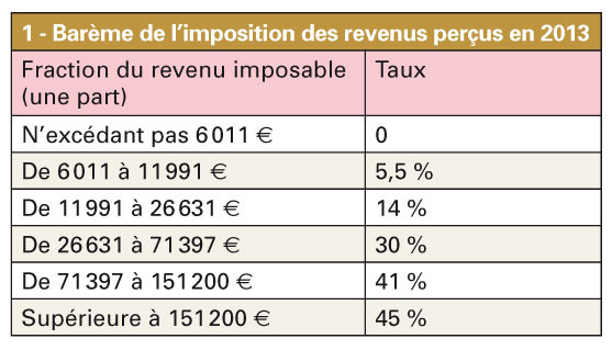 Après deux années consécutives de « gel », les limites de l’ensemble des tranches du barème de l’impôt pour les revenus de 2013 seraient revalorisées de 0,8 %.