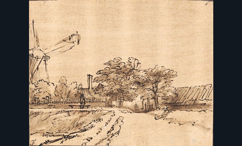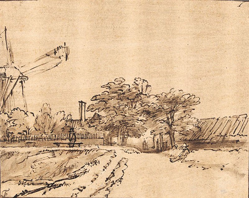 Le voyage débute au XVIIe siècle avec Rembrandt (dessin de la porte Saint-Antoine à Amsterdam) et Jacob van Ruisdael et s’achève au XIXe avec la génération de Josephus August Knip. Point commun des œuvres : le paysage, qu’il soit néerlandais (marines, moulins, scènes d’hiver fourmillantes), français (spectaculaire grande Vue de Cambrai notamment), italien (Paysage près de Galloro, entièrement aquarelle) ou encore africain. La route est belle, très belle…