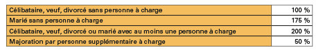 – décès ou invalidité permanente et totale : le montant du capital décès est fixé en fonction de la situation de famille et en pourcentage du salaire brut annuel. Le tableau ci-dessous récapitule les taux appliqués :
