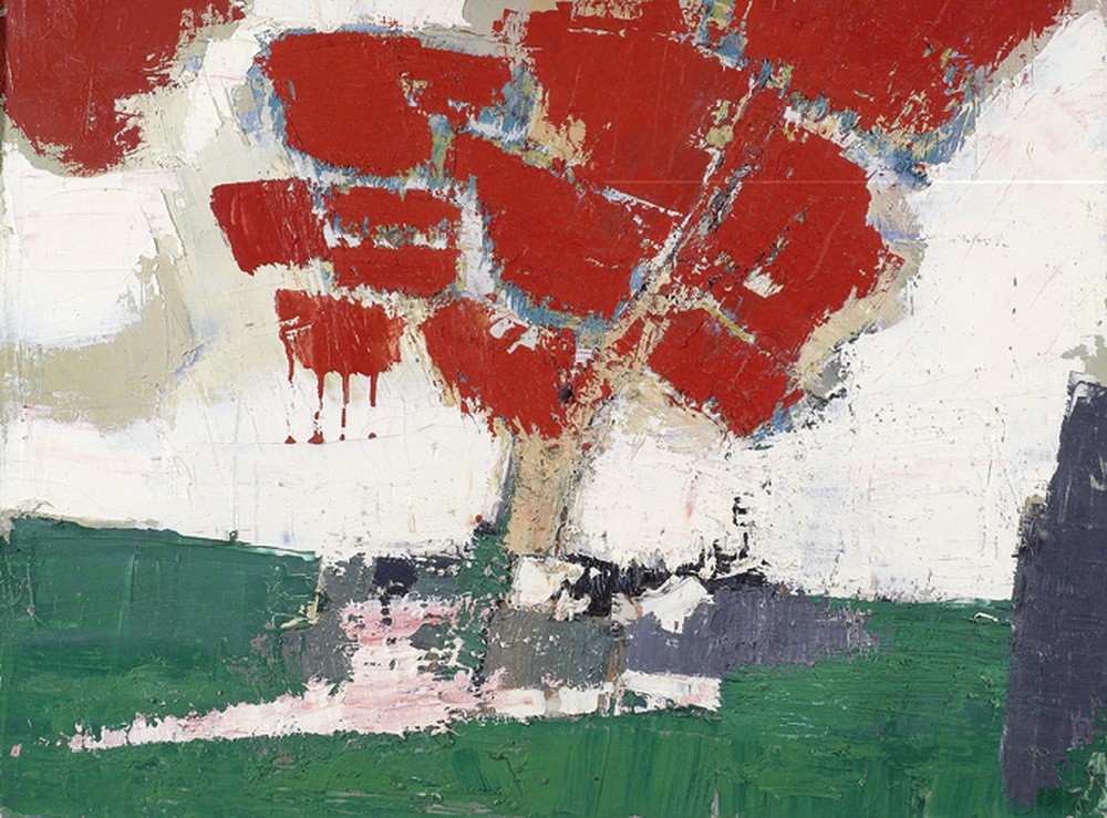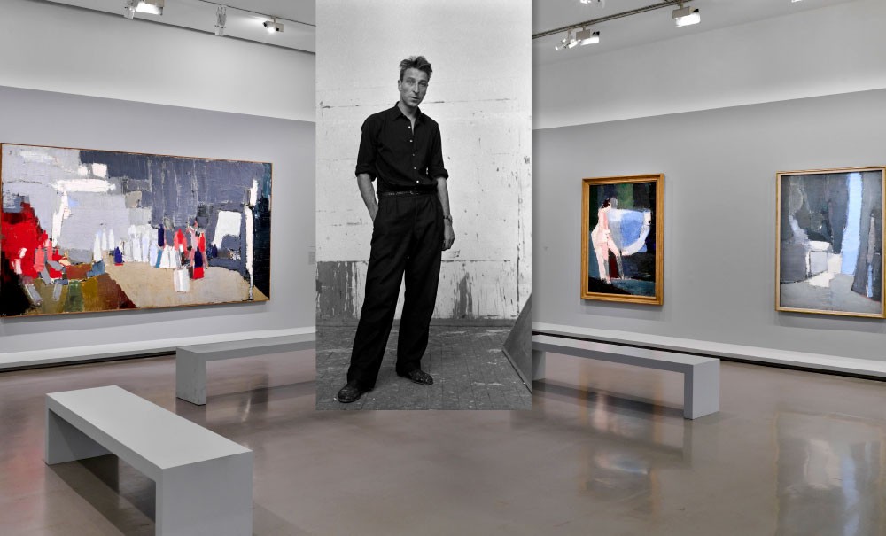 Grand par le talent, l’ardeur et la taille (1,96 m), Nicolas de Staël méritait bien une rétrospective dans un lieu permettant à ses œuvres, de tout format, de respirer au large. Vingt ans après celle de Beaubourg, l’exposition du Musée d’Art Moderne retrace en quelque 200 toiles, accompagnées de films, de photos et d’écrits, l’évolution de son art au fil d’une vie brève, passionnée, et tout autant semée de trous noirs que d’éblouissements. On parcourt dans ses pas la trajectoire chaotique qui amène l’enfant de la très ancienne lignée balte des Staël von Holstein – exilé à cinq ans après la révolution Russe de 1917, et orphelin à huit – à errer de Pologne en Belgique avant d’enfin poser ses valises en France. Une vie de fragments juxtaposés sans cohérence, vrai patchwork de chocs, d’impressions disparates, de lieux, cultures et langages collés à la hâte dans un perpétuel mouvement. Le peintre et son art semblent également composés de parcelles successives, et on sent d’ailleurs que, pour les comprendre en profondeur, cet angle-là de lecture serait peut-être plus pertinent encore que le seul enchaînement biographique. Au demeurant, toute l’histoire peut aussi se regarder comme un combat incessant entre abstraction et figuration, ou plutôt, dans la tradition de Platon, comme un dialogue maïeutique toujours renouvelé entre les deux approches pour accoucher de la forme finale de chaque œuvre.
