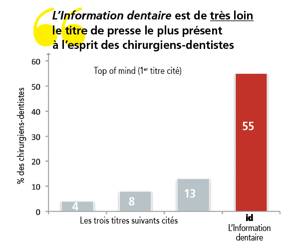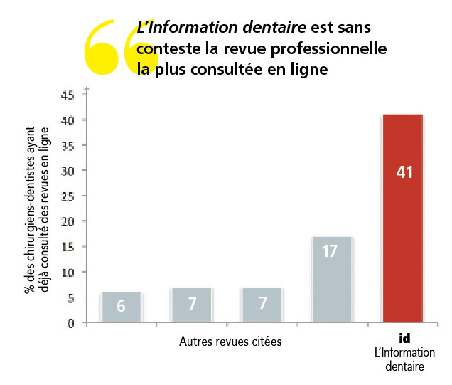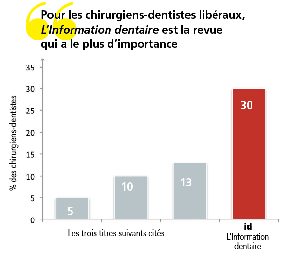 • 42 % des chirurgiens-dentistes en exercice libéral lisent tous les numéros reçus de L’Information dentaire.