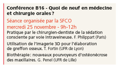 Thomas Fortin, spécialiste de la chirurgie guidée, va nous convaincre d’utiliser l’imagerie 3D pour élaborer nos greffons osseux. En effet, l’utilisation des nouveaux outils numériques, en association avec l’allogreffe, permet la réalisation d’une chirurgie d’augmentation osseuse a minima. Jacotti décrit en 2005 une technique de greffe d’apposition simplifiée : avant l’intervention, une impression tridimensionnelle de la zone à greffer est réalisée à partir de l’imagerie tridimensionnelle. On obtient alors un modèle stéréolithographique qui est la réplique exacte de l’os et des dents du patient. Le jour de l’intervention, c’est sur ce modèle stéréolithographique stérile que le greffon sera mis en forme. Une fois le greffon préparé, le patient est installé et anesthésié. Un lambeau d’accès constitué d’une unique incision de décharge suffit à tunneliser le greffon puis à le fixer. La fermeture du site se fait sans tension, et ce sans incision d’épaisseur partielle. La diminution de la durée d’intervention et du nombre d’incisions améliore les suites opératoires et préserve la vascularisation du lambeau. De plus, il est possible que l’absence d’incision crestale diminue le risque d’exposition de la greffe avec cette technique. Nous en détaillerons les étapes de réalisation ainsi que les perspectives d’avenir au travers de cas cliniques (fig. 1, 2, 3).