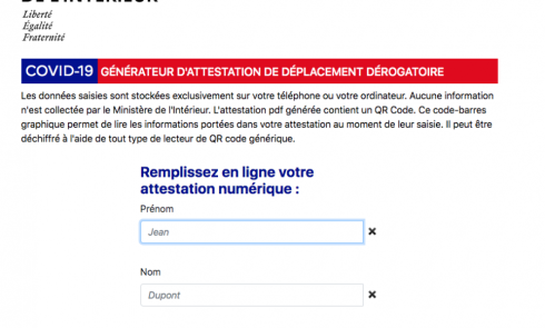Covid-19 : attestation numérique de déplacement dérogatoire