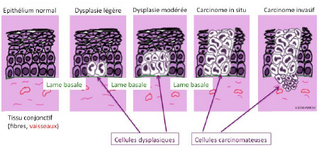 En effet, elle ne faisait pas apparaître que les cellules sont d’abord dysplasiques avant de devenir carcinomateuses (distinction qui apparaissait dans le texte). La voici donc complétée.
