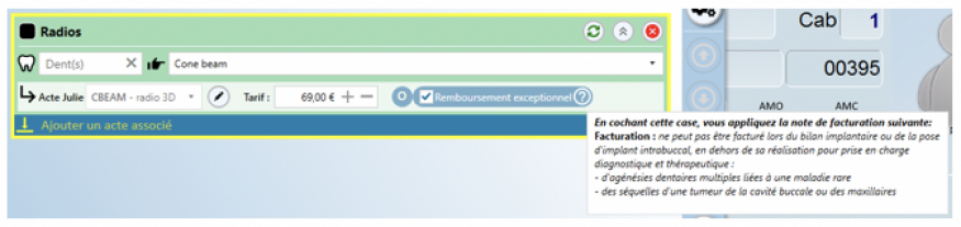 Survolez le « ? » à l’aide de votre souris et vous découvrirez toutes les conditions de facturation de l’acte saisi.