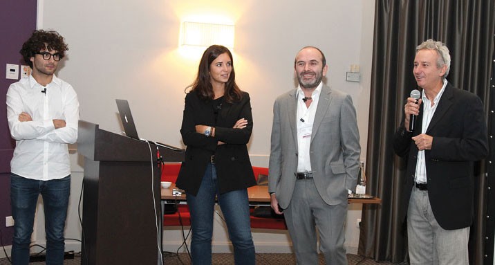 Spectaculaire aussi la présentation du groupe Symbiose de Bordeaux. Le titre déjà nous y préparait : Ce que l’avenir nous promet, la CFAO vous l’apporte. Quatre geeks de la dentisterie pour une présentation en quatre tableaux.