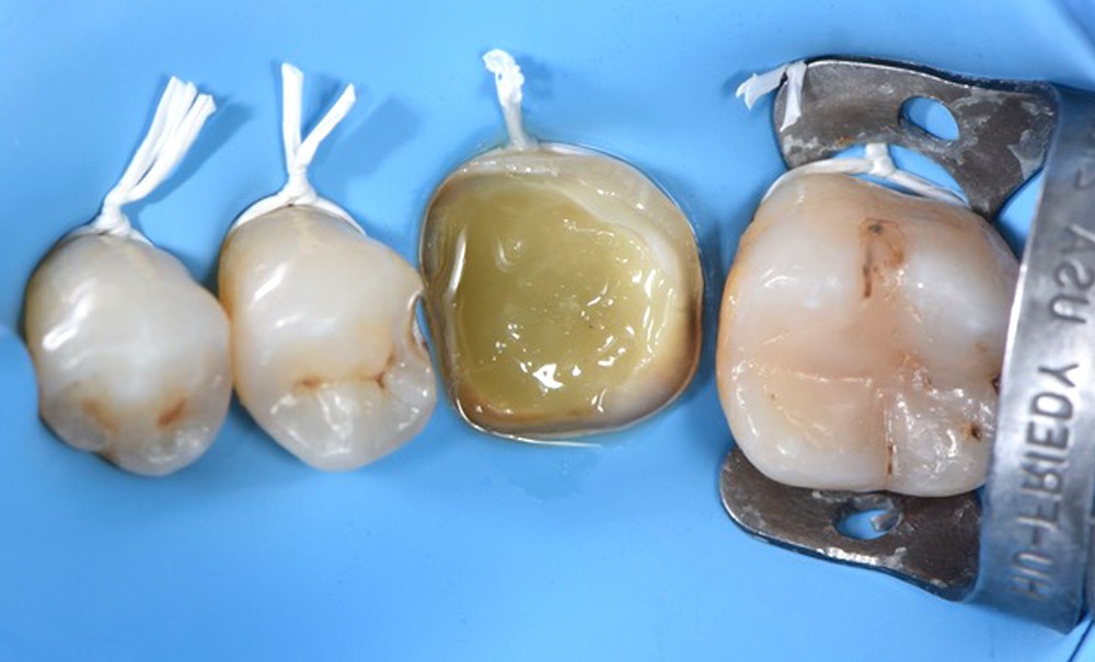 Si elle n’est pas structurellement plus fragile qu’une dent pulpée, la dent dépulpée présente tout de même un risque accru de fracture dû à la flexion de ses cuspides sous contrainte, favorisée par la perte de substance coronaire, surtout lorsque la continuité du cerclage dentinaire péri-cervical est rompue. La cavité d’accès endodontique, profonde, donne lieu à des parois hautes et fines, et la perte des crêtes marginales favorise davantage la flexion de ces parois lors des fonctions occlusales. Les restaurations adhésives peuvent permettre de compenser la perte de substance coronaire tout en rétablissant la cohésion des structures dentaires par l’intermédiaire de la restauration. On rétablit ainsi une unité bio-fonctionnelle dent/restauration dans la mesure où la résistance intrinsèque du type de restauration choisi permet d’atteindre et de pérenniser ces objectifs. Cette démarche est l’une des principales motivations d’indication des restaurations partielles collées indirectes, en particulier en vitrocéramique renforcée, qui permettent, dans bien des situations, de rétablir les aspects esthétiques et fonctionnels de la dent, tout en préservant ses tissus originels bien mieux qu’une restauration corono-périphérique dont la préparation nécessite souvent un sacrifice tissulaire complémentaire important. Dans des situations de moindre délabrement, les matériaux de restauration directs peuvent aussi atteindre ces mêmes objectifs avec une approche bien plus conservatrice et un coût tissulaire de mise en œuvre encore réduit, pour peu qu’ils présentent les capacités d’adhésion et de résistance suffisantes.