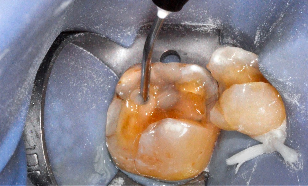 Né au milieu des années 1990, le concept du scellement dentinaire immédiat (SDI, ou IDS en anglais pour Immediate Dentin Sealing) représente pour les auteurs de cette étude la meilleure stratégie d’adhésion pour les restaurations collées indirectes. Considérant qu’il existe plus de 20 raisons pour justifier ce choix, ils citent en particulier la diminution de la percolation bactérienne, des sensibilités postopératoires et des formations de hiatus, mais aussi l’amélioration de la force d’adhésion et de la résistance mécanique de la restauration collée, le renforcement des structures dentaires, ainsi que des avantages d’ordre pratique. Ils précisent aussi que le SDI consiste en l’application d’un système d’adhésif dentinaire immédiatement après la préparation dentaire, et ce afin de prévenir toute contamination des surfaces dentinaires exposées par les fluides buccaux ou par les matériaux d’empreinte.