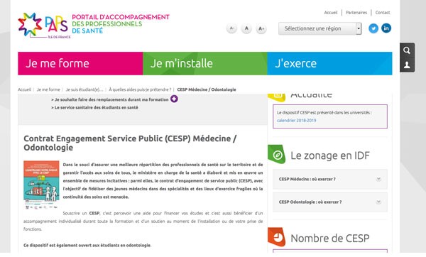 Au 31 décembre 2018, 534 contrats d’engagement de service public (CESP) ont été signés par des étudiants en dentaire sur toute la France, et cela depuis 2013, année d’instauration de ce dispositif d’aide à l’installation, indique l’ARS île-de-France dans un « Point d’étape » consacré à l’accès aux soins dans la région publié le 7 février. Ce contrat ouvre droit au versement d’une allocation mensuelle de 1 200 e bruts aux étudiants jusqu’à la fin de leurs études. En contrepartie, ils s’engagent, dès la fin de leur cursus, à exercer pour une durée équivalente à celle du contrat, à titre libéral ou salarié, dans des zones géographiques « sous-dotées » en praticiens.