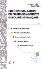 Le « Guide d’installation du chirurgien-dentiste en Polynésie Française » a pour but de répondre de façon détaillée à l’ensemble des interrogations abordées dans cet article. Il s’agit d’un livret destiné à aider les jeunes praticiens polynésiens qui souhaitent retourner en Polynésie pour exercer, mais il s’adresse aussi à tout praticien souhaitant s’y installer. Il traite des aspects pratiques de l’installation, il est non exhaustif et oriente le lecteur vers la source des informations. Il a été agencé en fonction de codes couleurs présents depuis la table des matières afin de permettre au lecteur de trouver rapidement l’information qu’il recherche.