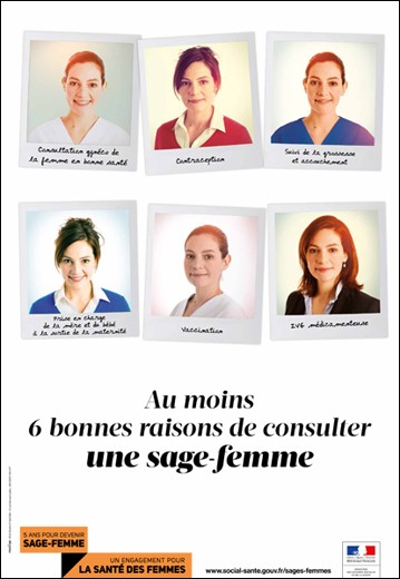 Des outils de communication pratiques et pédagogiques ont ainsi été développés en étroite collaboration avec les syndicats de sages-femmes et le Conseil national de l’Ordre des sages-femmes, autour d’un message central : « 5 ans pour devenir sage-femme, un engagement pour la santé des femmes », et d’une accroche : « 6 bonnes raisons de consulter une sage-femme ».