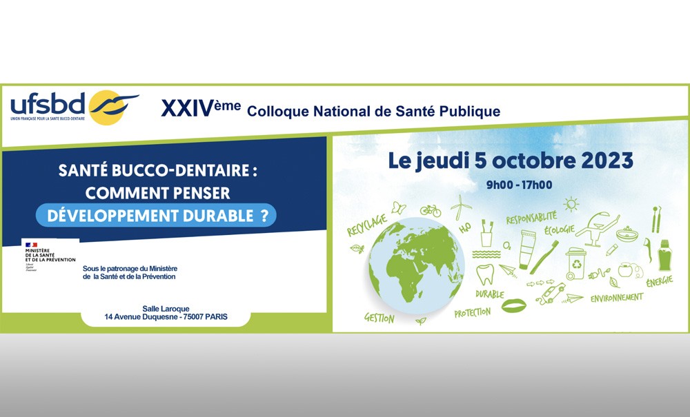 « Santé bucco-dentaire : comment penser développement durable ? » Avec cette thématique, le 24e Colloque national de santé publique de l’UFSBD, qui se tiendra le 4 octobre au ministère de la Santé à Paris, promet de donner aux praticiens toutes les clés pour s’engager sur cette voie devenue incontournable. Au programme : liens entre perturbateurs endocriniens et santé orale, empreinte écologique des activités de soins, substitution de certains produits sans perte de chance pour les patients, démarche écoresponsable de toute l’équipe du cabinet dentaire…