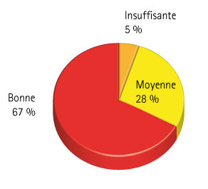 • L’hygiène dentaire : l’analyse de l’hygiène dentaire chez les enfants de 7 et 8 ans est évaluée par les chirurgiens-dentistes comme insuffisante ou moyenne pour un tiers des enfants (32,9 %)(fig. 3), en prenant en compte le fait que, dans certains des cas, les enfants étaient prévenus du passage des chirurgiens-dentistes et pouvaient présenter une meilleure hygiène que de coutume.