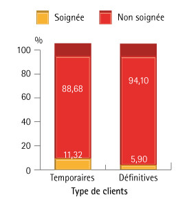 89 % des lésions ne sont pas traitées chez les enfants présentant des caries actives en denture temporaire, et 94 % dans le cas de caries actives en denture définitive(fig. 4).