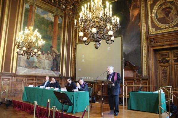 C’est dans le grand salon d’honneur de la Sorbonne que s’est tenue cette séance, le 23 mars dernier. Après avoir remercié le recteur de l’Université de Paris pour son accueil, le président de l’Académie, Michel Pompignoli, a prononcé une courte allocution entamée en évoquant l’origine du nom de Sorbonne, lié à Robert de Sorbon, théologien et chapelain de saint Louis et fondateur au XIIIe siècle du collège de Sorbonne.