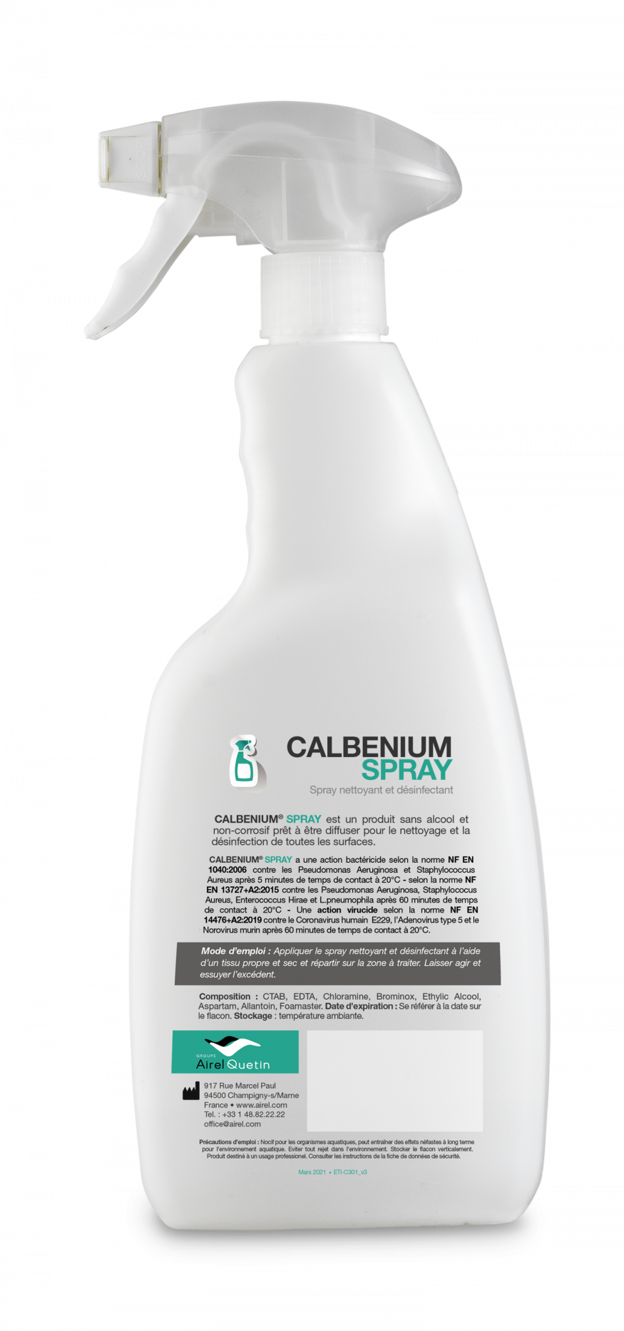 Conseil d’utilisation : utiliser le CALBENIUM® SPRAY à l’aide d’un support microfibre, vaporiser 2-3 sprays sur le support microfibre pour un usage quotidien : matin, entre deux-patients et soir.