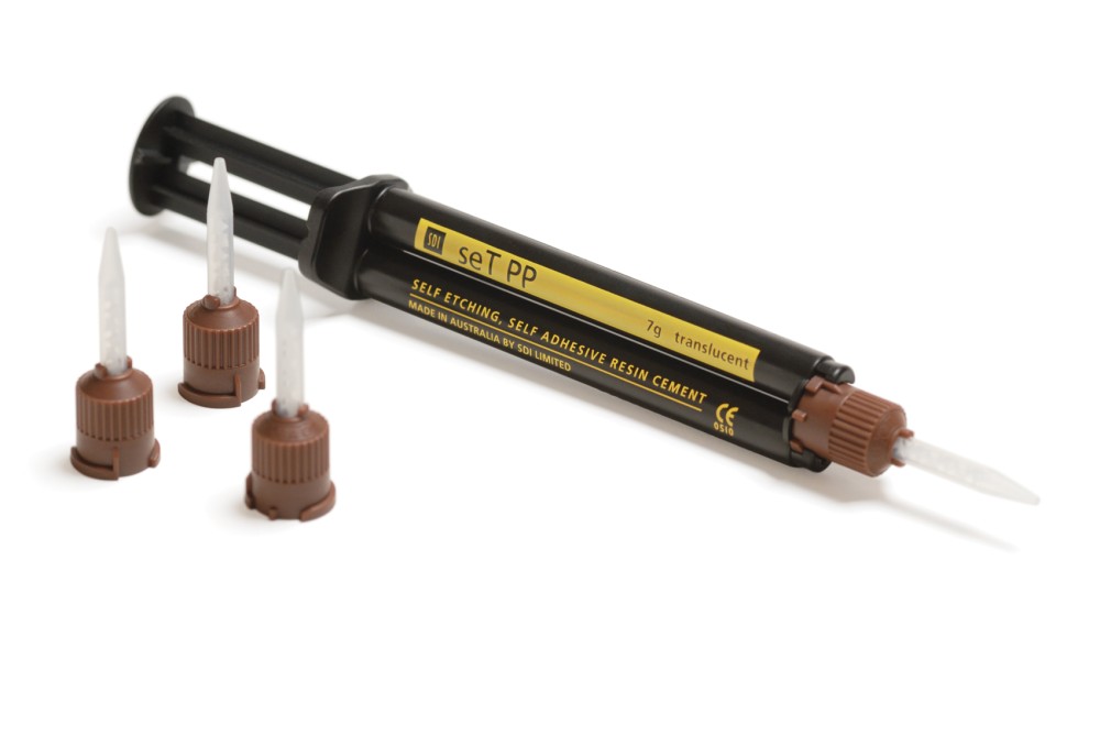SDI nous démontre, si cela était encore nécessaire, que le marché des colles d’assemblage « tout-en-un » (auto-mordançantes, auto-adhésives) est non seulement très actif, mais peut également être innovant. En effet, Set PP n’est pas un simple composite d’assemblage, c’est aussi un verre ionomère susceptible de relarguer du fluor selon une technologie Ion Glass® exclusive à la marque australienne. Il peut donc être employé pour assembler toutes sortes de pièces prothétiques (couronnes, onlays) en toutes sortes de matériaux (avec une bonne affinité pour les céramiques de dernière génération), sans préparation des surfaces particulières. Présenté en seringues « automix » à embouts standard, le produit est prêt à l’emploi. Très fluide à la sortie de l’embout, il peut s’appliquer en couches très fines ; sa polymérisation de type dual permet un temps de travail intéressant, mais facilite également l’élimination des excès par un flash de photopolymérisation.