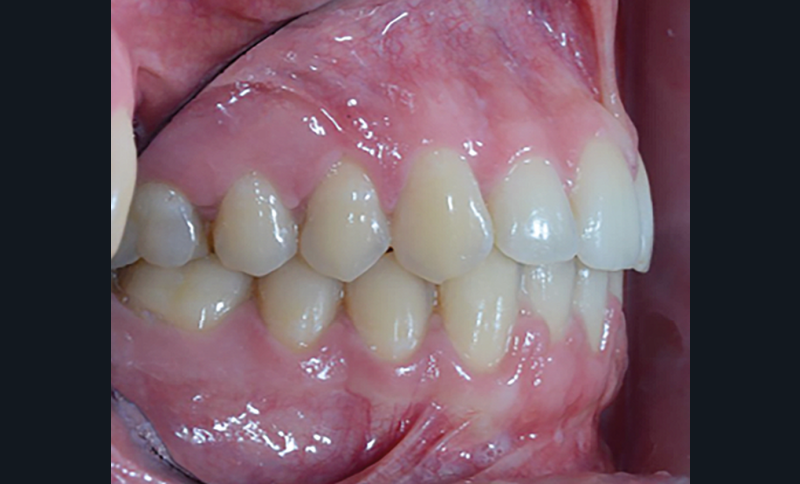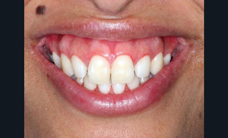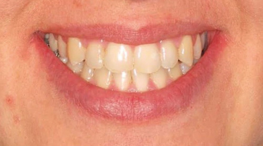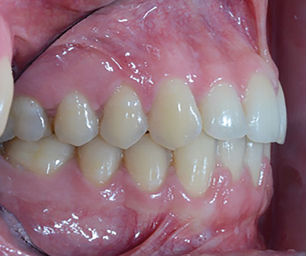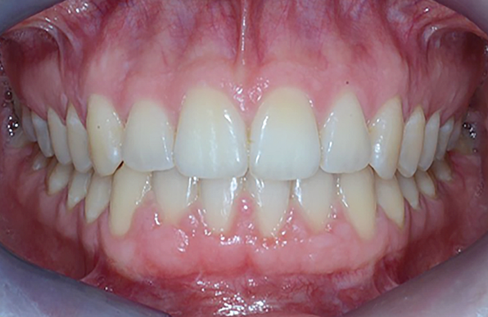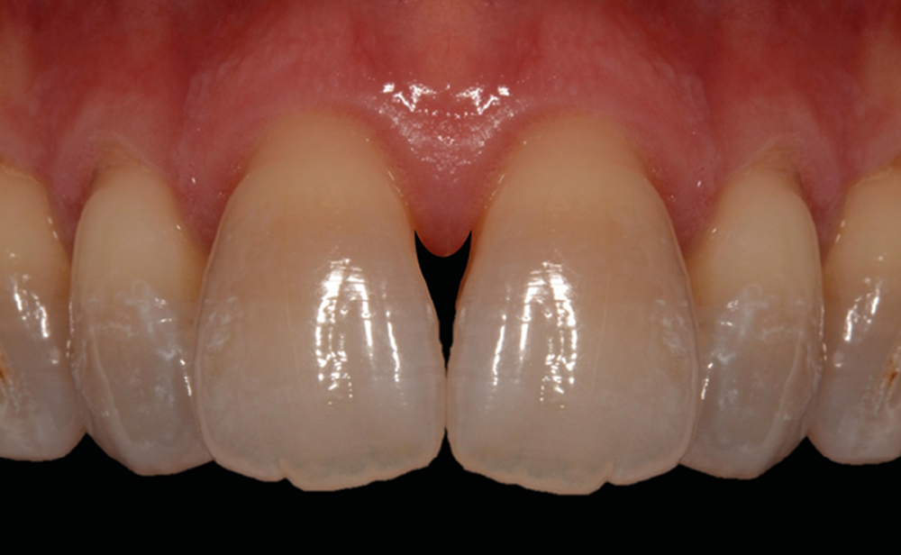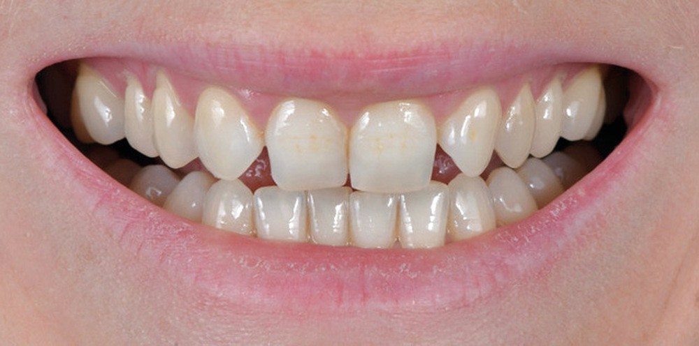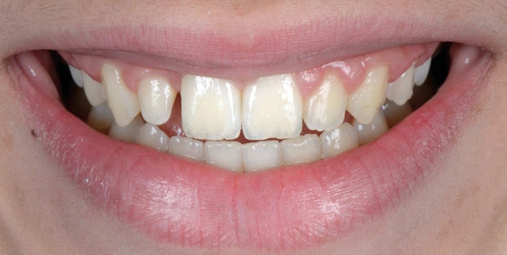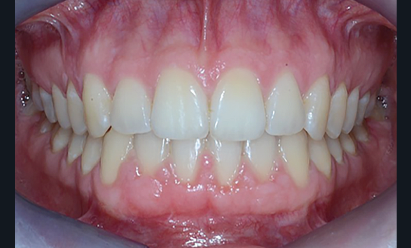 Le Pr Olivier Sorel insistera sur l’importance du respect des formes et des proportions anatomiques, pour éviter de voir apparaître, notamment chez les adultes, de très inesthétiques triangles noirs lors de la phase d’alignement (fig. 6a-b). Il présentera sa démarche diagnostique (évaluation de la forme des dents et de la dysharmonie dento-dentaire, fig. 7a-c) et l’intégration de la réduction amélaire proximale au plan de traitement, afin de s’assurer, en fin de traitement, la présence de papilles gingivales et donc d’un sourire harmonieux (fig. 8a-d).