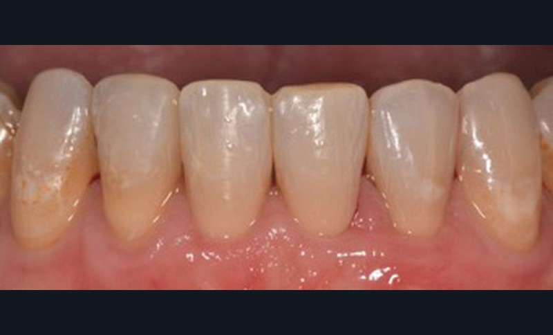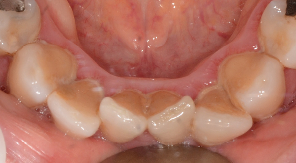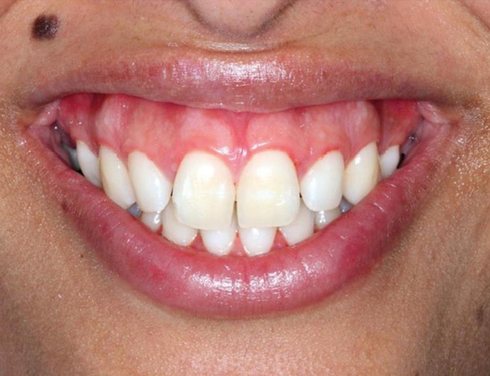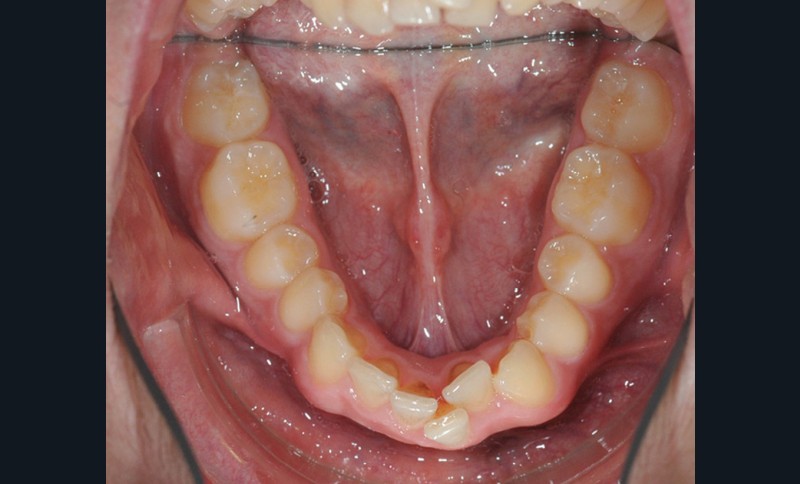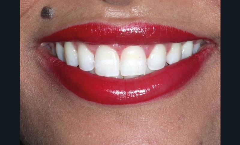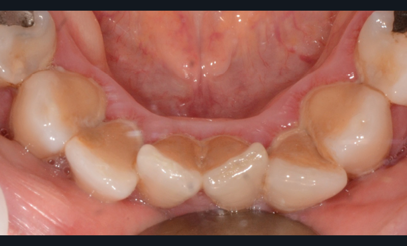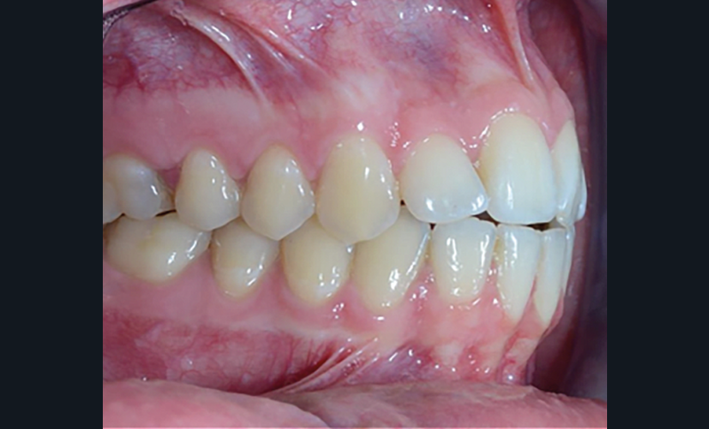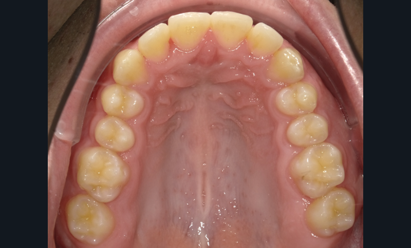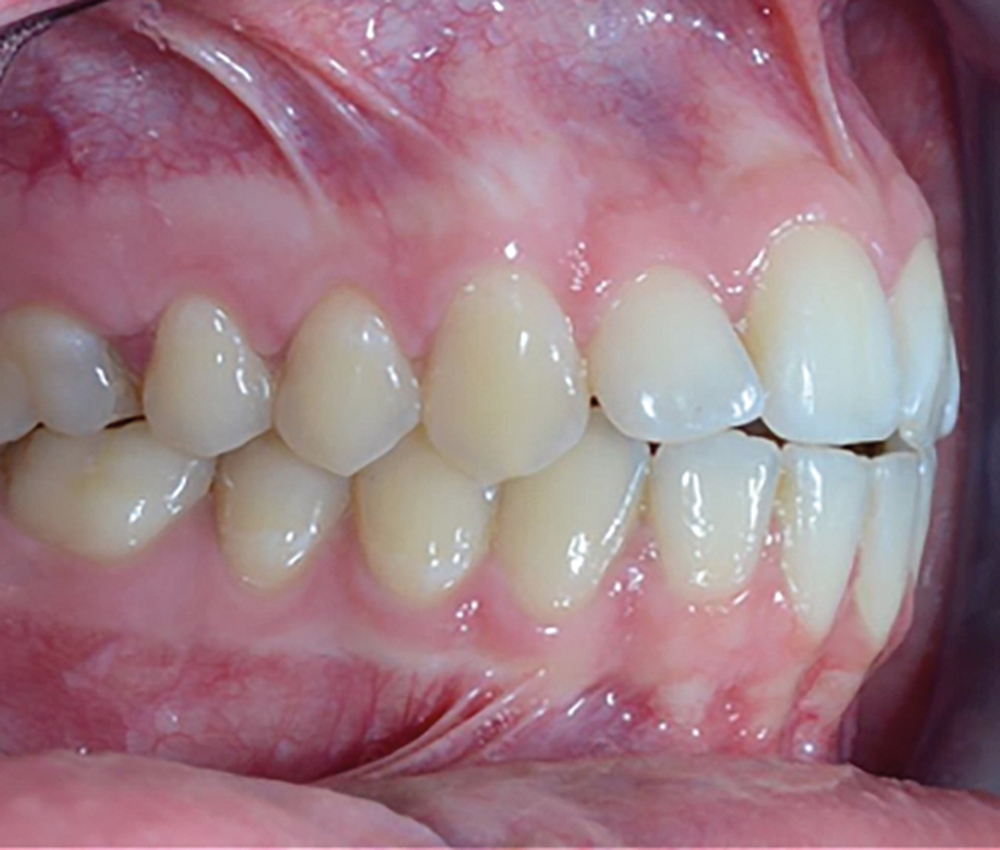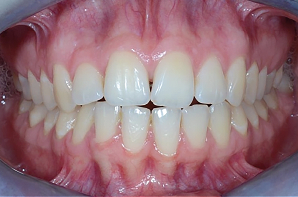 Le Pr Olivier Sorel insistera sur l’importance du respect des formes et des proportions anatomiques, pour éviter de voir apparaître, notamment chez les adultes, de très inesthétiques triangles noirs lors de la phase d’alignement (fig. 6a-b). Il présentera sa démarche diagnostique (évaluation de la forme des dents et de la dysharmonie dento-dentaire, fig. 7a-c) et l’intégration de la réduction amélaire proximale au plan de traitement, afin de s’assurer, en fin de traitement, la présence de papilles gingivales et donc d’un sourire harmonieux (fig. 8a-d).