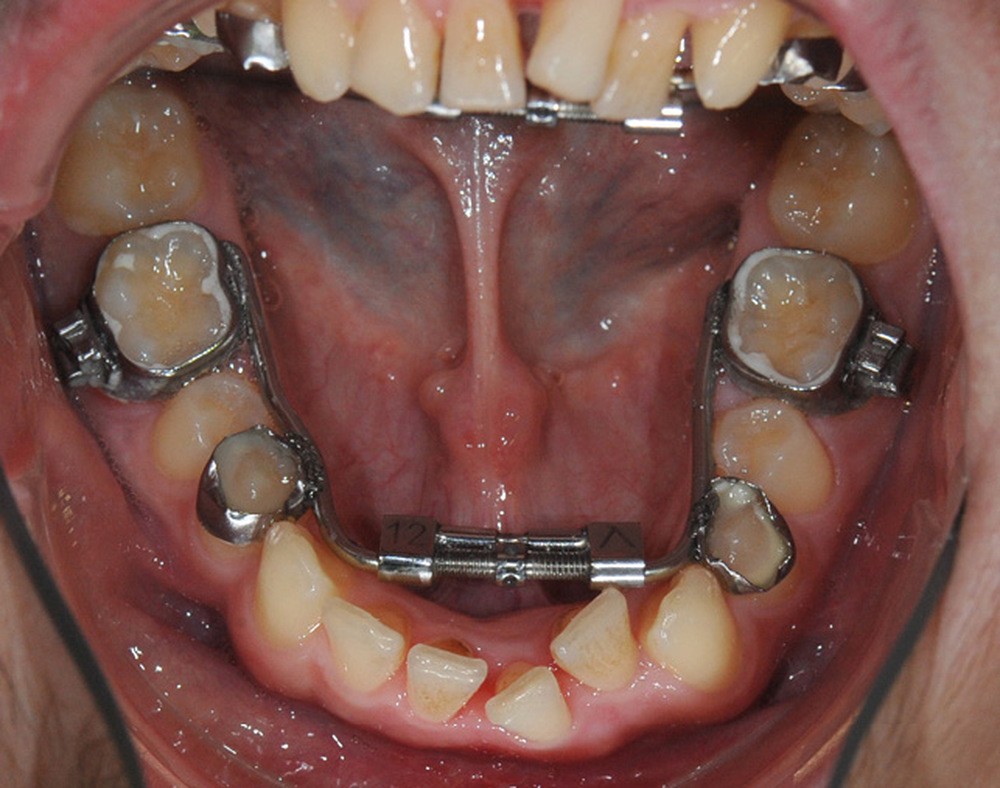 La matinée s’achèvera par le traitement de la dysharmonie dent-arcade par des techniques chirurgicales originales et novatrices : l’expansion transversale maxillo-mandibulaire (Dr Jean-Luc Ouhioun, fig. 2a-h) et la distraction sagittale du bloc incisivo-canin « front-block de Triaca » (Dr Olivier Esnault).