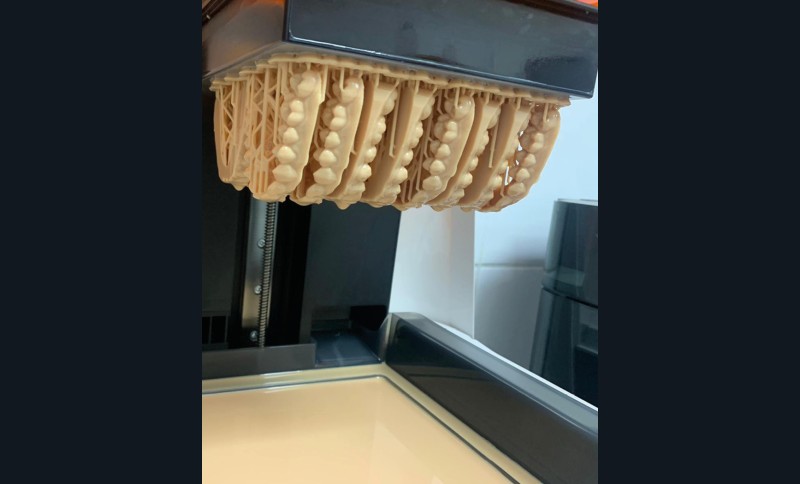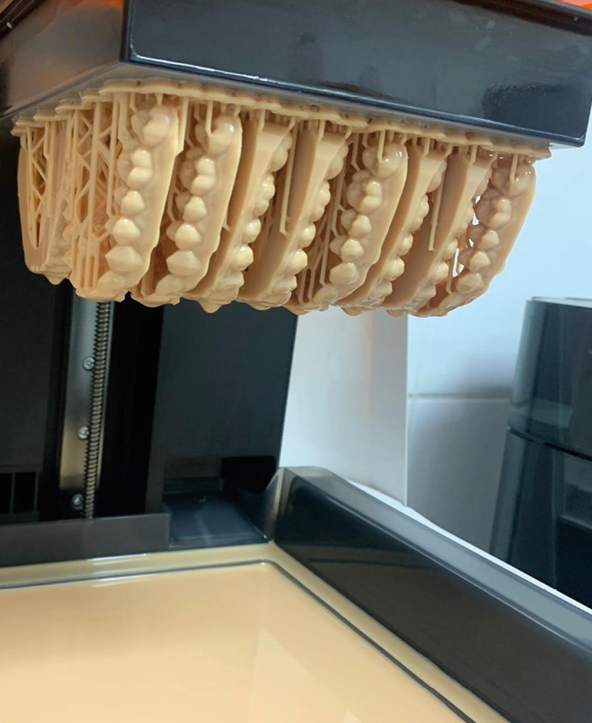 Dans le premier cas, il s’agit de plaques de nickel-titane usinées (fig. 10a-b) ou de fils de contention, pliés par un robot. Dans le deuxième cas, il s’agit de gouttières thermoformées sur des modèles (fig. 11), modifiés ou non, voire bientôt des gouttières imprimées directement.