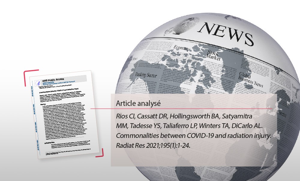 - la composante inflammatoire : l’« orage cytokinique » chez les patients atteints de Covid19 est bien décrit ; or, après irradiation, on observe un relargage cytokinique important au niveau des cellules endothéliales, fibroblastiques, immunes et parenchymateuses. De même, une dysrégulation du système rénine-angiotensine a été mise en évidence dans les deux cas de figure ;