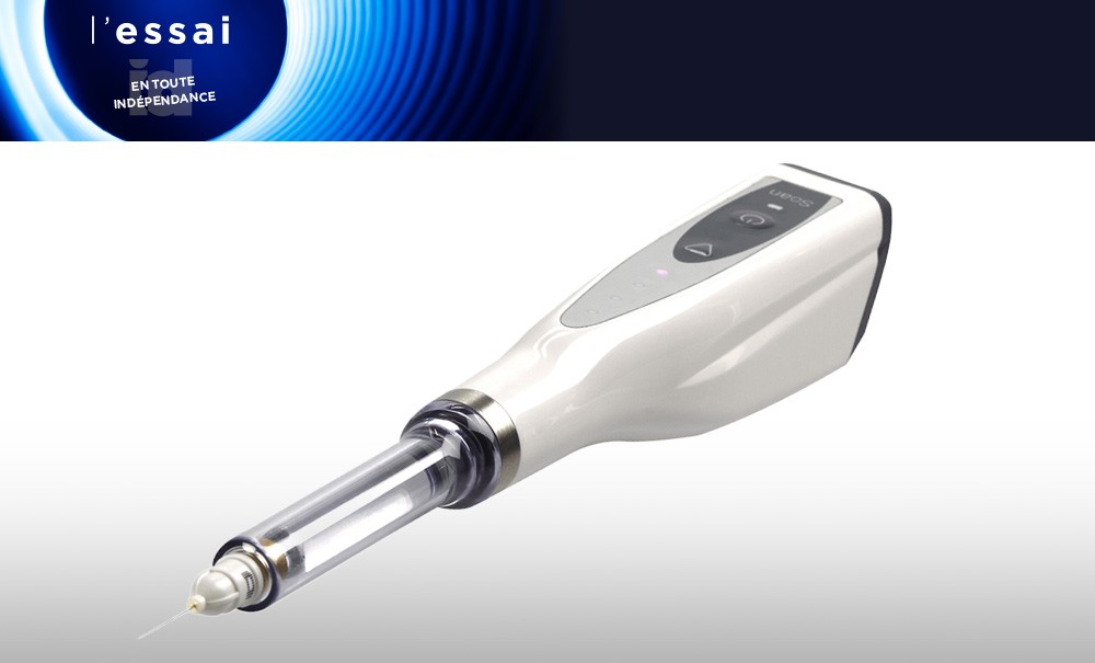 L’intérêt principal est ici la forme de la pièce à main qui ressemble plus à un lanceur spatial qu’aux traditionnelles seringues manuelles, sans parler de plusieurs produits concurrents qui demandent une prise en main « pistolet » pouvant être ressentie comme plus agressive par les patients, petits ou grands. Il est vrai que le Soan, une fois chargé, se démarque par sa longueur, mais la prise en main « stylo » escamote notablement la partie la plus renflée de l’appareil, permettant une approche plus douce lors de cette phase, souvent ressentie négativement. Par le patient comme par le praticien d’ailleurs, le second étant bien conscient que la réussite de l’analgésie va conditionner celle de la suite des opérations !