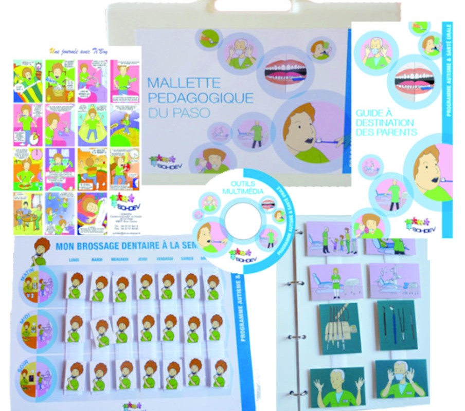 a développé, dans le cadre du Programme Autisme & Santé Orale (PASO)lancé le 1er octobre un ensemble d’outils de médiation et de communicationà l’intention des familles et des aidants. Les familles accèdent gratuitement sur le site Internet de l’association SOHDEV (www.sohdev.org) à un ensemble de vidéos explicatives, pictogrammes,bande-son, bandes dessinées…