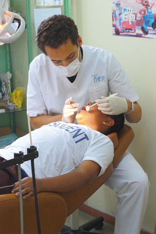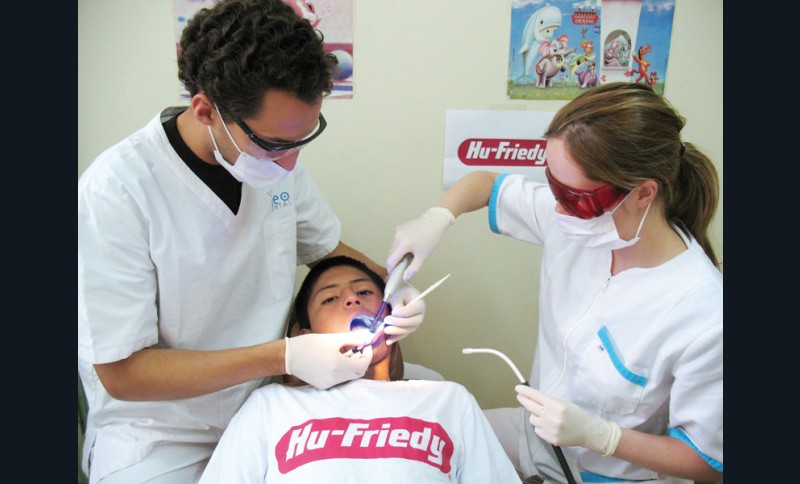 Fort d’une expérience humanitaire en Zambie et au Pérou avec des confrères dentistes, j’ai proposé à Iza, mon assistante dentaire, d’intégrer l’équipe soignante dans un projet humanitaire soutenu par la société française Elsodent. Ni une ni deux, Iza a préparé sa valise et son sac à dos. Direction le Pérou où nous étions attendus dans un orphelinat de Lima : « La Ciudad de Los Ninos » (la Cité des Enfants). La structure dispose d’un cabinet médical où passe un médecin péruvien pour effectuer des vacations et prendre soin des 300 enfants. Sur place, se trouve également un cabinet dentaire aménagé avec du matériel pour réaliser des thérapeutiques dentaires de base. Quelques dentistes privés travaillant sur Lima passent faire un bilan buccodentaire et prennent en charge les urgences.